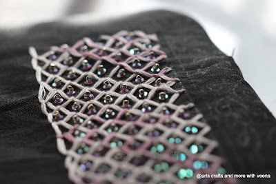 I have tried to use this stitch in a closed stacked manner to form a mesh like feel and accentuating with sequins and beads.